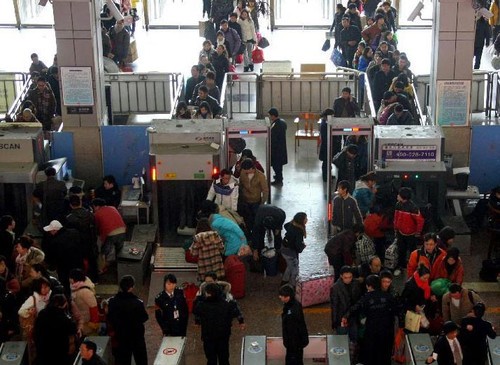 車站安檢大隊(duì)共計(jì)擁有隊(duì)員400余名,平均年齡25歲,全部大專及以上學(xué)歷,在所有服務(wù)的7個(gè)站點(diǎn)中,按照服務(wù)內(nèi)容及工作區(qū)域設(shè)置“四區(qū)四崗”,即引導(dǎo)分流區(qū)引導(dǎo)員崗位、人證核實(shí)區(qū)查驗(yàn)員崗位、人身手檢區(qū)手檢員崗位、圖像識(shí)別區(qū)值機(jī)員崗位,引導(dǎo)員根據(jù)候檢旅客及行李數(shù)量實(shí)行分段放行,并提示旅客將自己的行李物品放在X光安檢儀傳送帶上接受安檢,與此同時(shí),手檢員按照標(biāo)準(zhǔn)十八個(gè)步驟對(duì)旅客進(jìn)行全身手檢,并對(duì)旅客隨身攜帶的瓶裝液體進(jìn)行提示試喝檢查,值機(jī)員則通過(guò)X光安檢儀對(duì)旅客行李物品進(jìn)行檢查,如發(fā)現(xiàn)可疑物品,值機(jī)員會(huì)通知站方值班人員,一同對(duì)可疑行李物品進(jìn)行開包檢查。