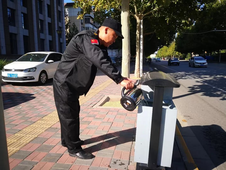 為了防止火勢蔓延,保安員及時通知執(zhí)勤的同事攜帶滅火器,在等待過程中,將垃圾桶附近的易燃品進(jìn)行了轉(zhuǎn)移。同事趕到后,及時果斷對火源進(jìn)行了撲滅。